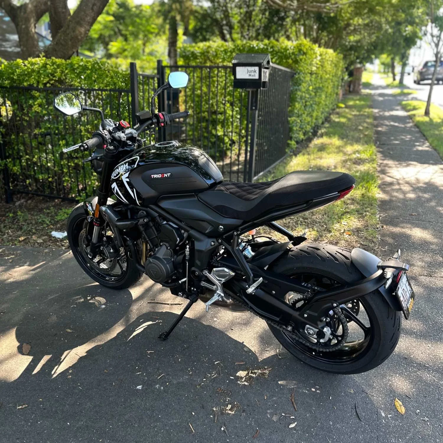 Elevate your Triumph Trident 660 with our custom seat trims, meticulously crafted to enhance rider comfort while delivering a slimmer, more refined visual profile. Our trims are designed to visually "break up" the large stock seat into a stylish three-panel design, ensuring your bike stands out with both form and function.
